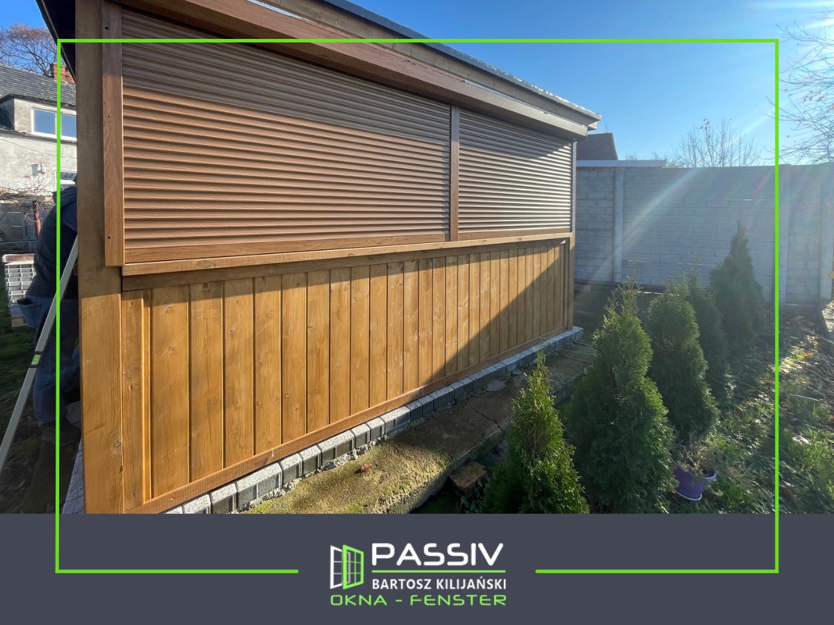 Dzięki roletom przestrzeń zyskała dodatkową ochronę przed słońcem, wiatrem oraz zapewnia większy komfort podczas korzystania z altanki o każdej porze dnia.